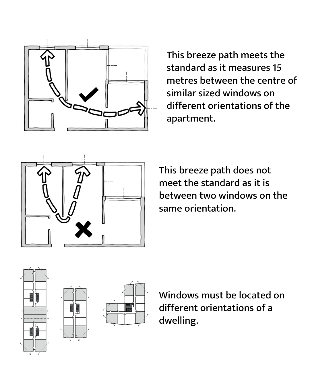 Natural ventilation is measured through what is referred to as a breeze path – a clear sequence of straight-line segments from the centreline of openings (windows or doors).